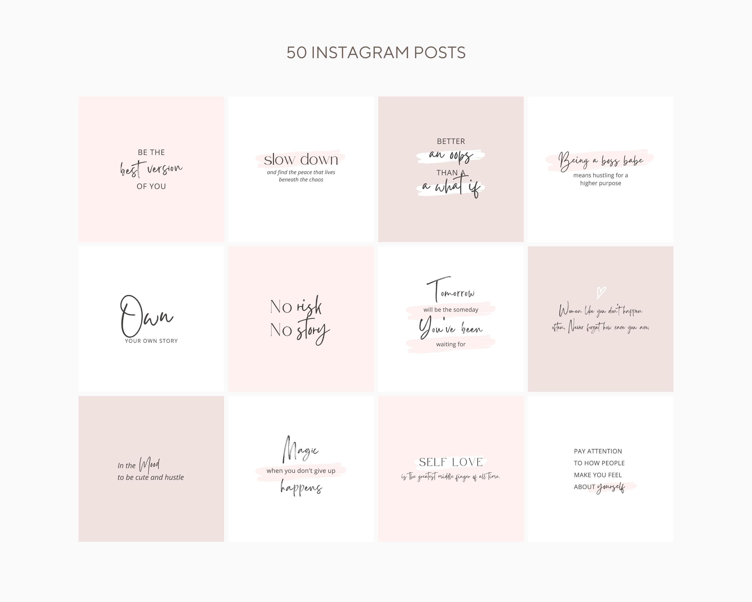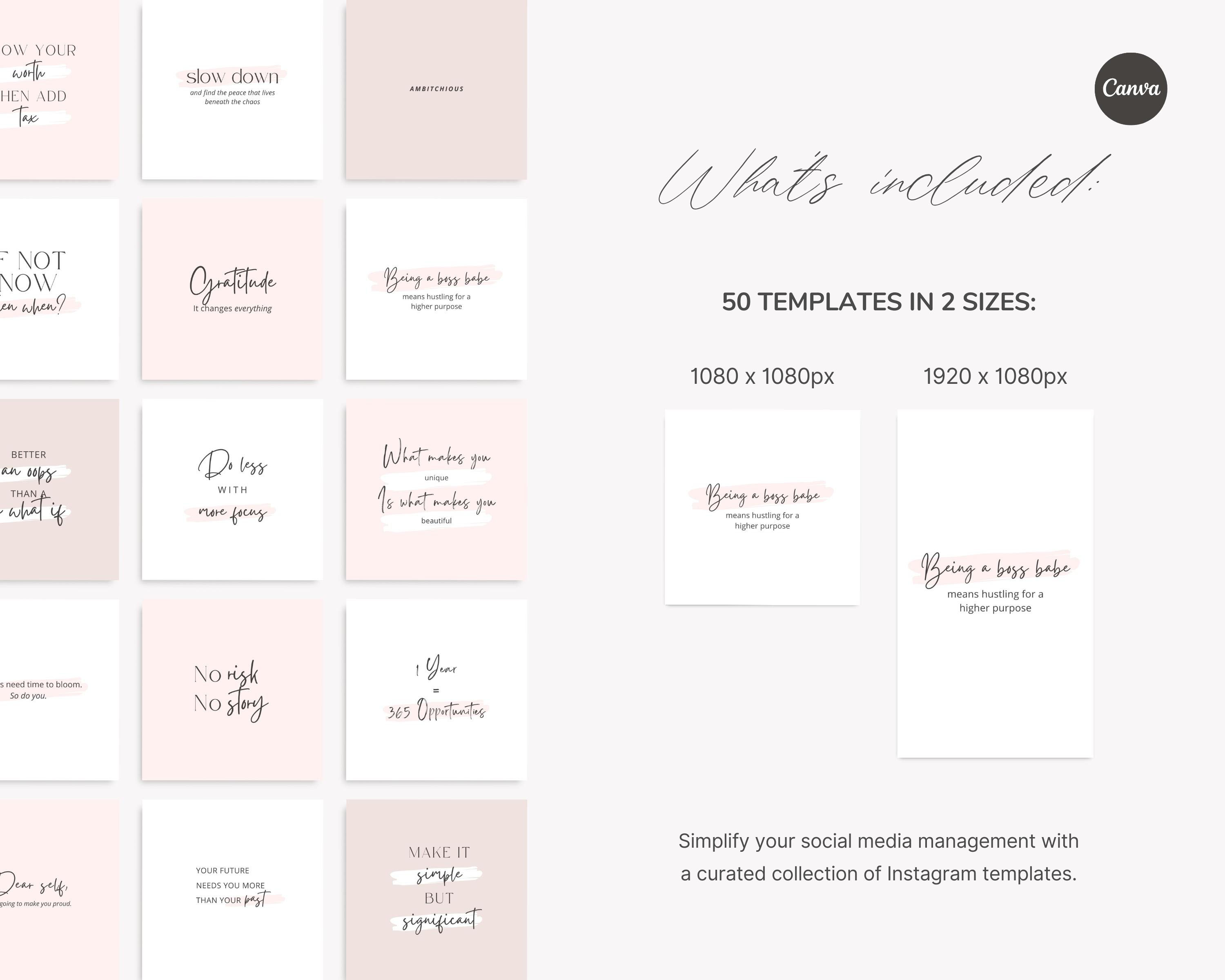 50 editable Instagram templates in 2 sizes: 1080x1080px and 1920x1080px