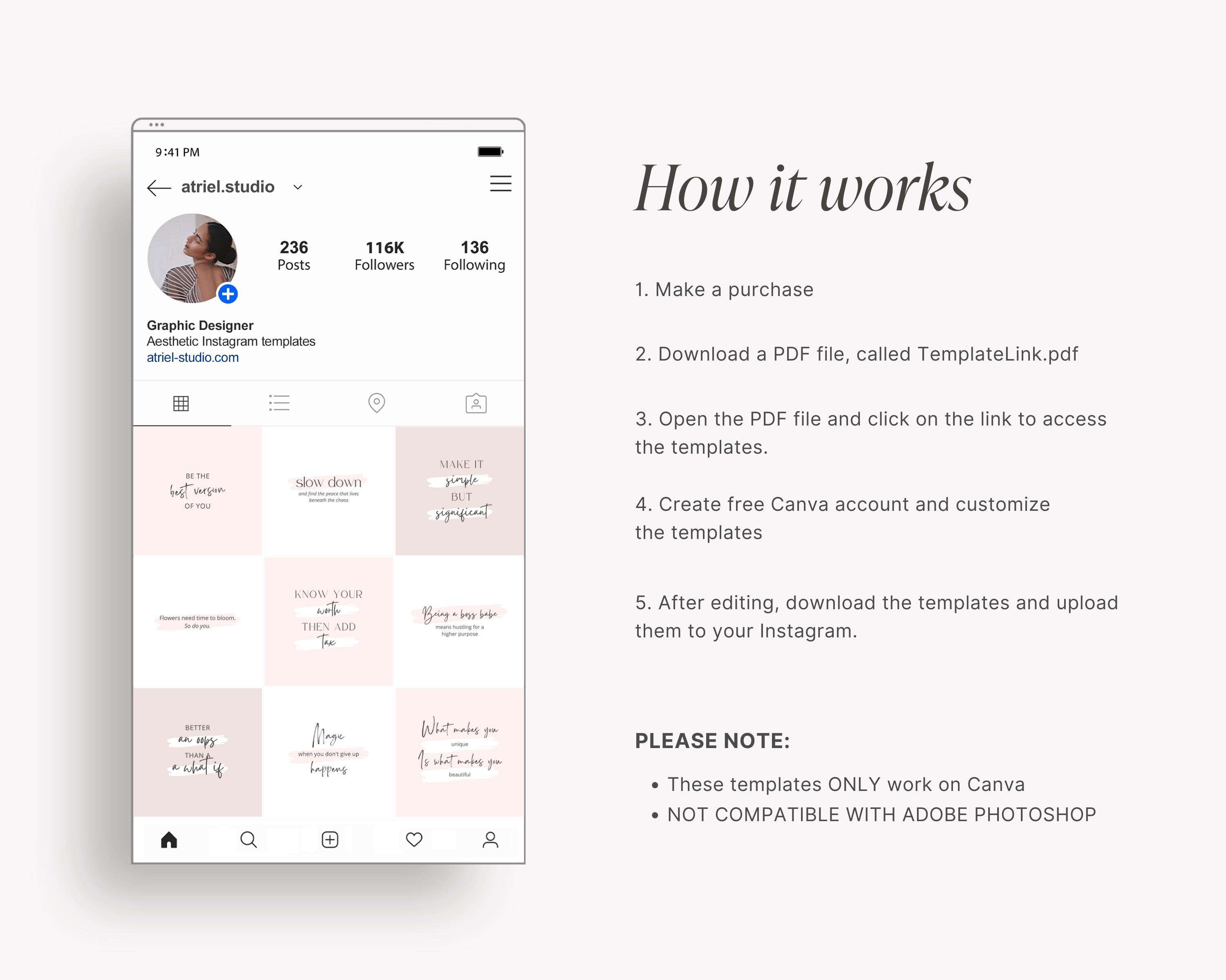 No design skills needed! Our user-friendly Instagram templates allow you to easily customize each element. Simply insert your photos, adjust colors to match your brand palette, add your unique text, and you’re ready to dazzle on Instagram!