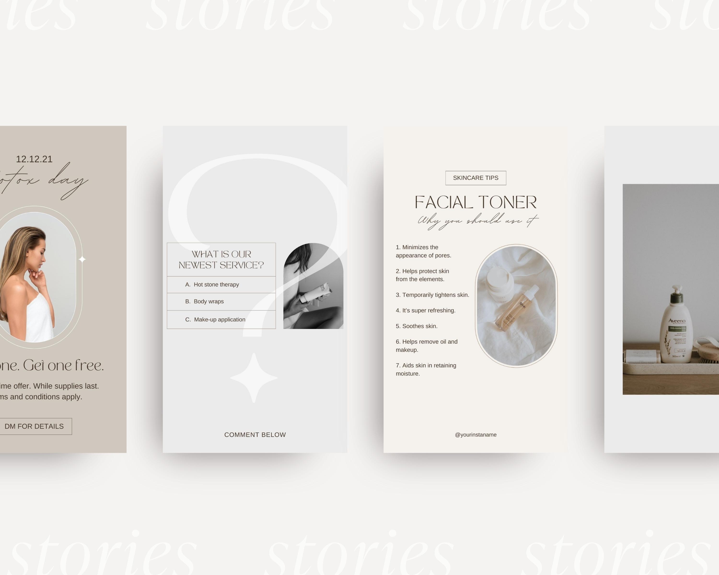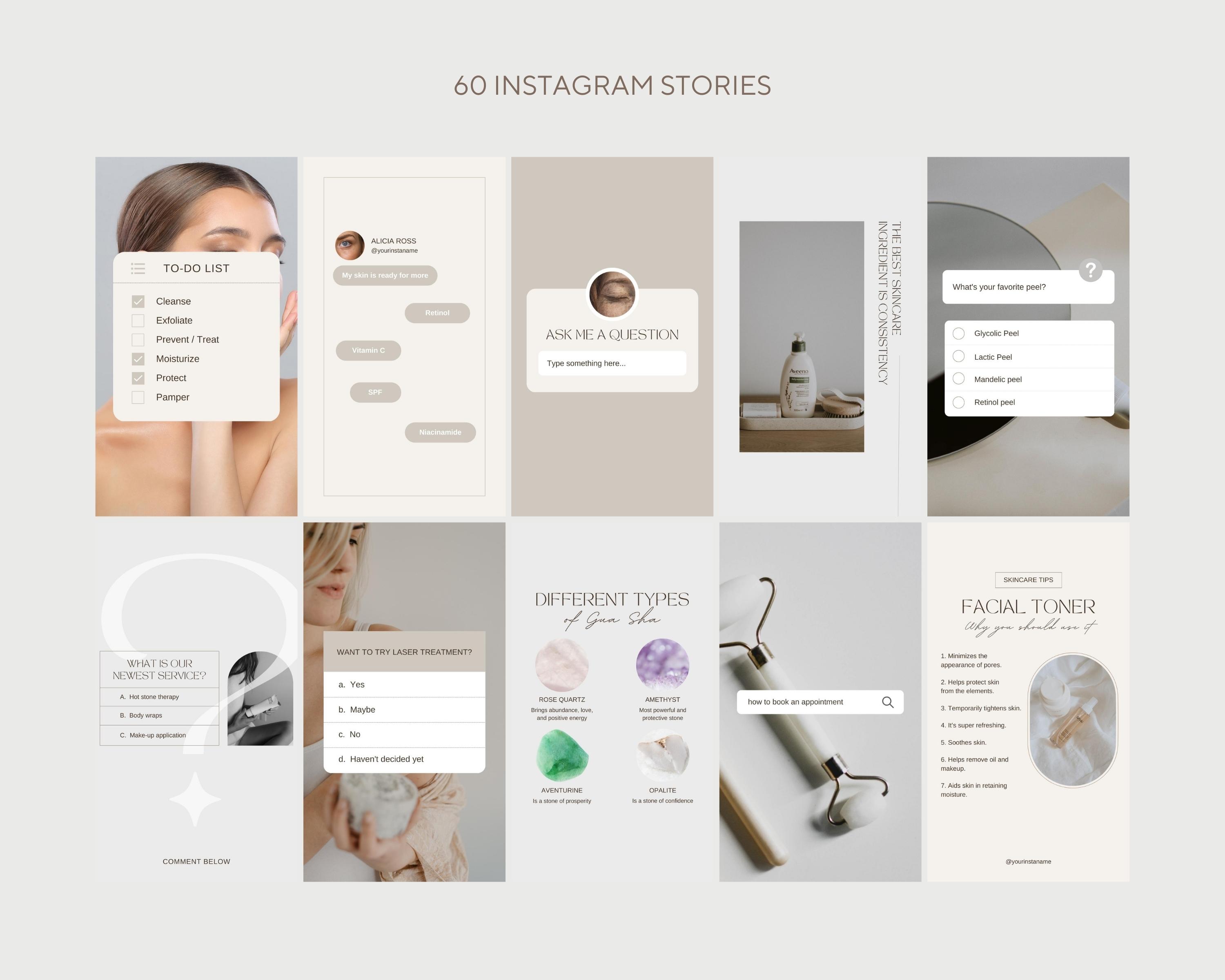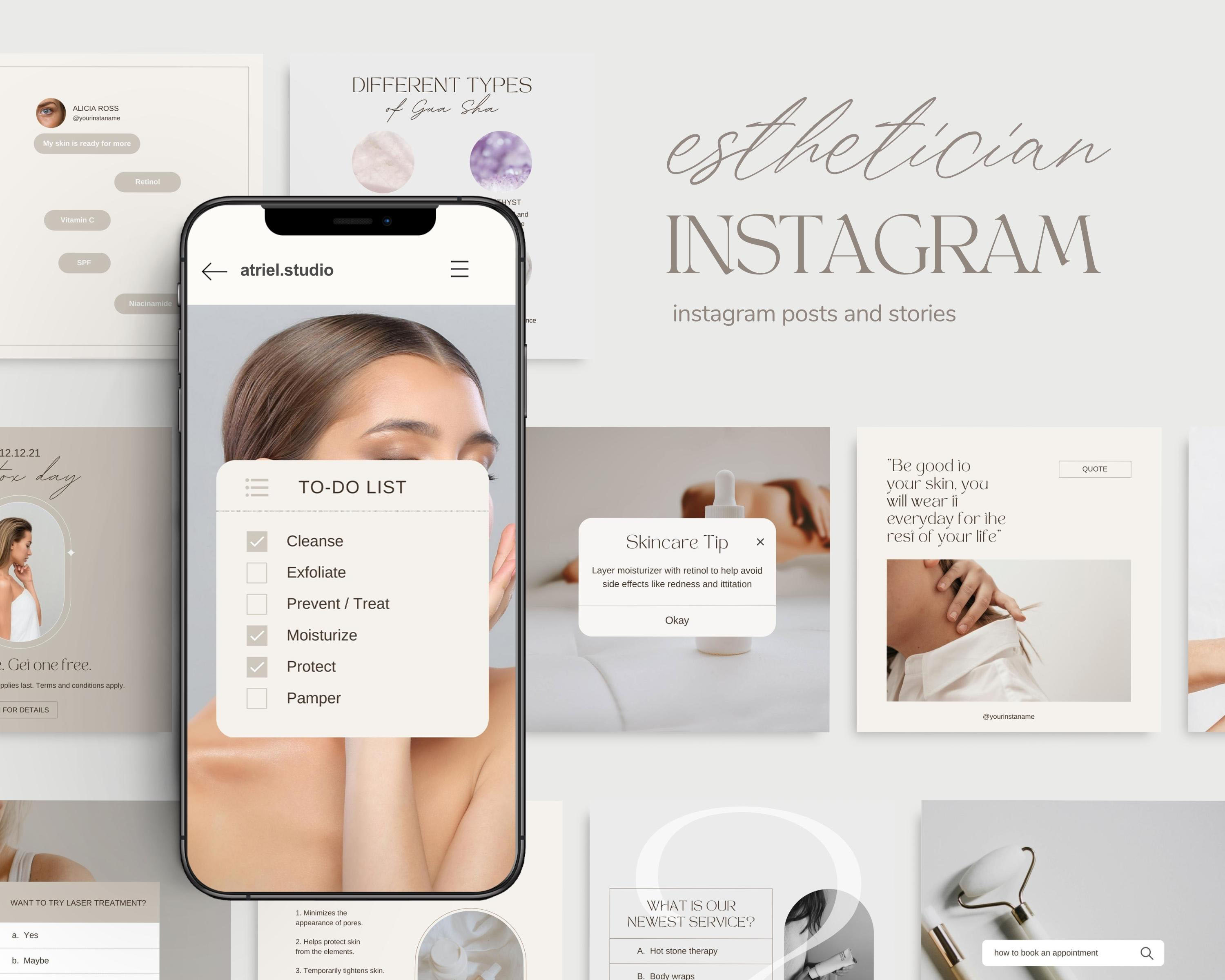 Looking for a content ideas for estheticians? Our curated collection of Esthetician Instagram templates is a game-changer! These editable Canva templates filled with content, designed specifically for your unique needs. You will receive 60 Esthetician templates that include various skincare quotes, beauty tips, product recommendations, and many more. Whether you are promoting your services, sharing skincare tips, or posting client testimonials, these beauty templates have you covered.