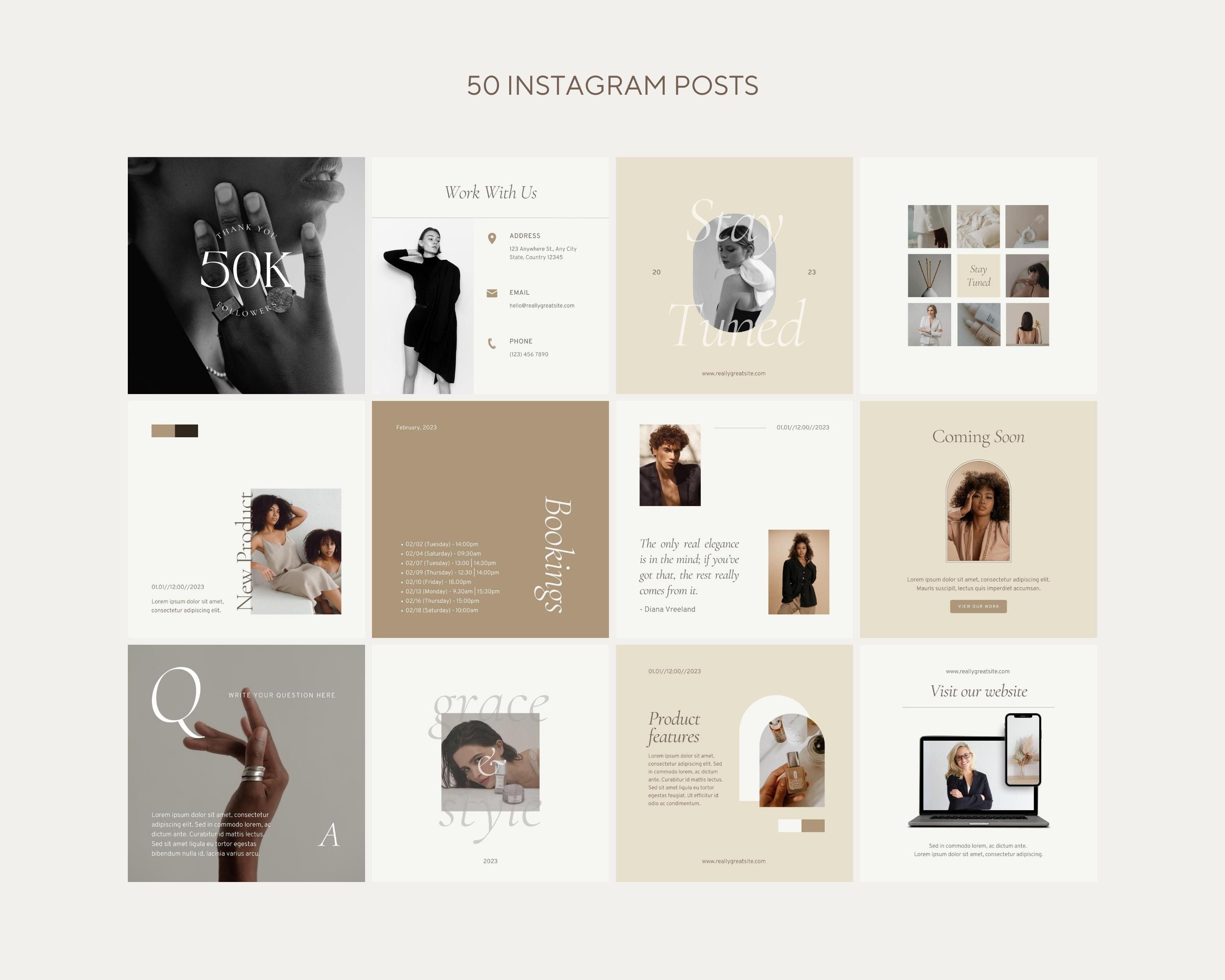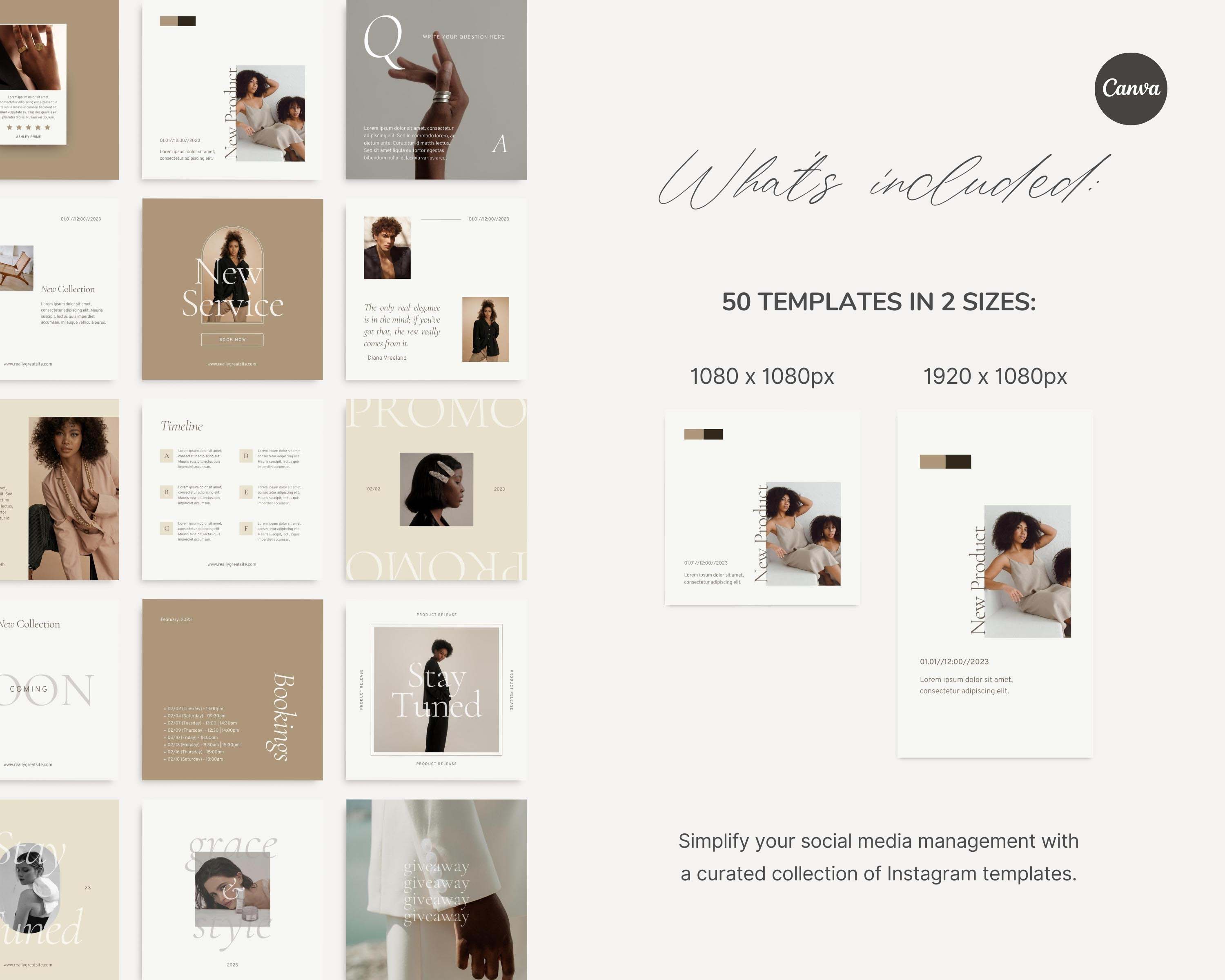 50 editable Instagram templates in 2 sizes: 1080x1080px and 1920x1080px