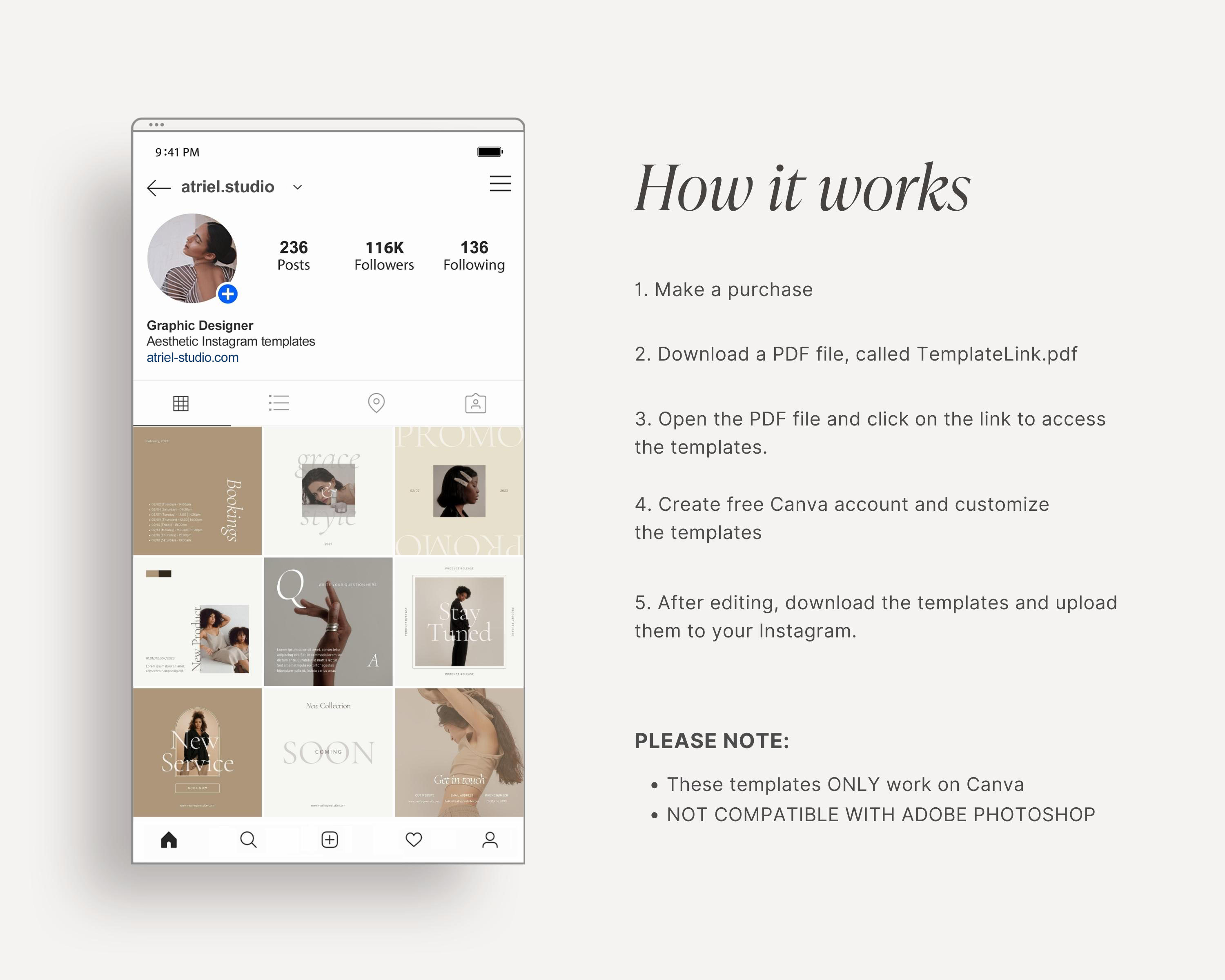 No design skills needed! Our user-friendly Instagram templates allow you to easily customize each element. Simply insert your photos, adjust colors to match your brand palette, add your unique text, and you’re ready to dazzle on Instagram!