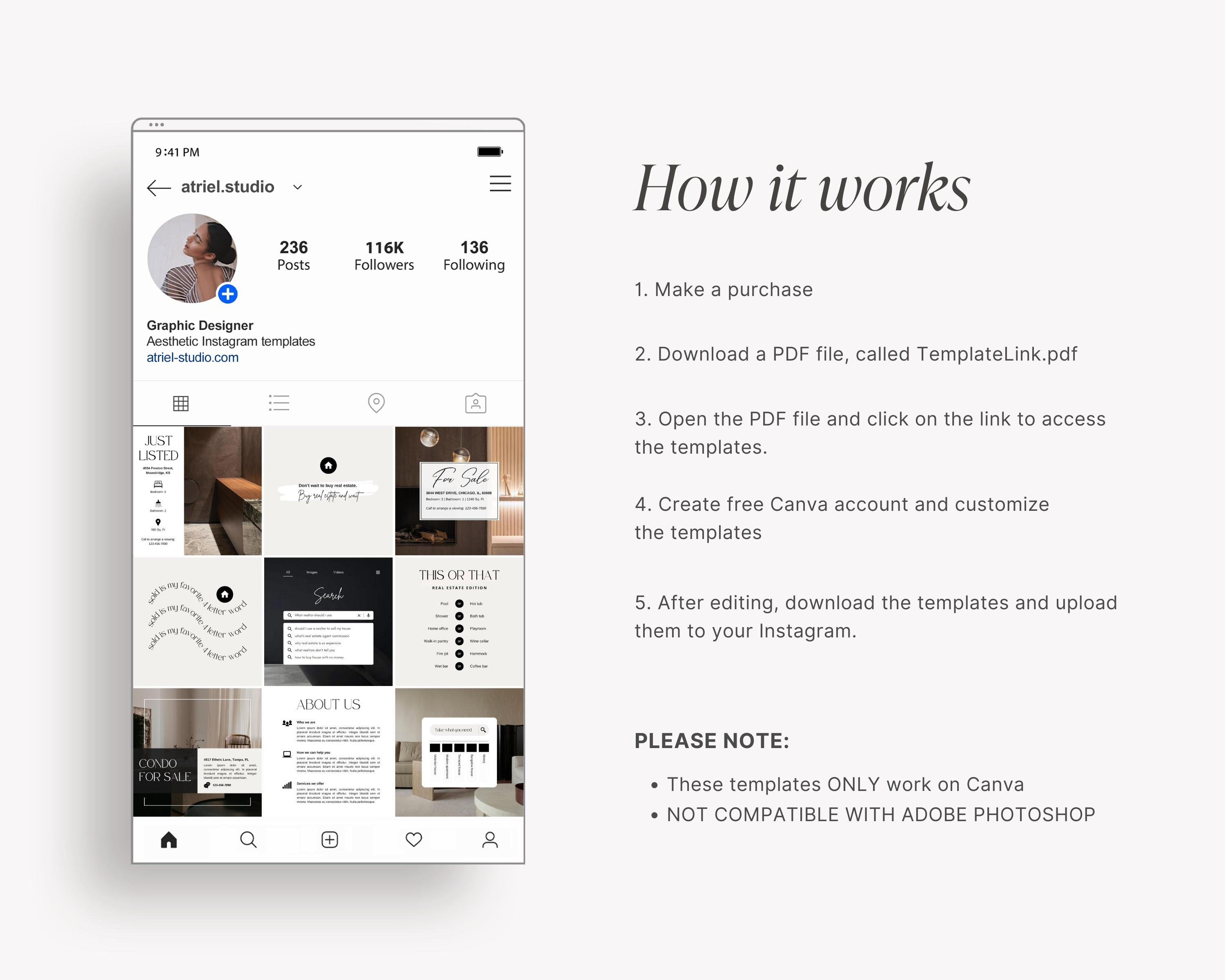No design skills needed! Our user-friendly Instagram templates allow you to easily customize each element. Simply insert your photos, adjust colors to match your brand palette, add your unique text, and you’re ready to dazzle on Instagram!